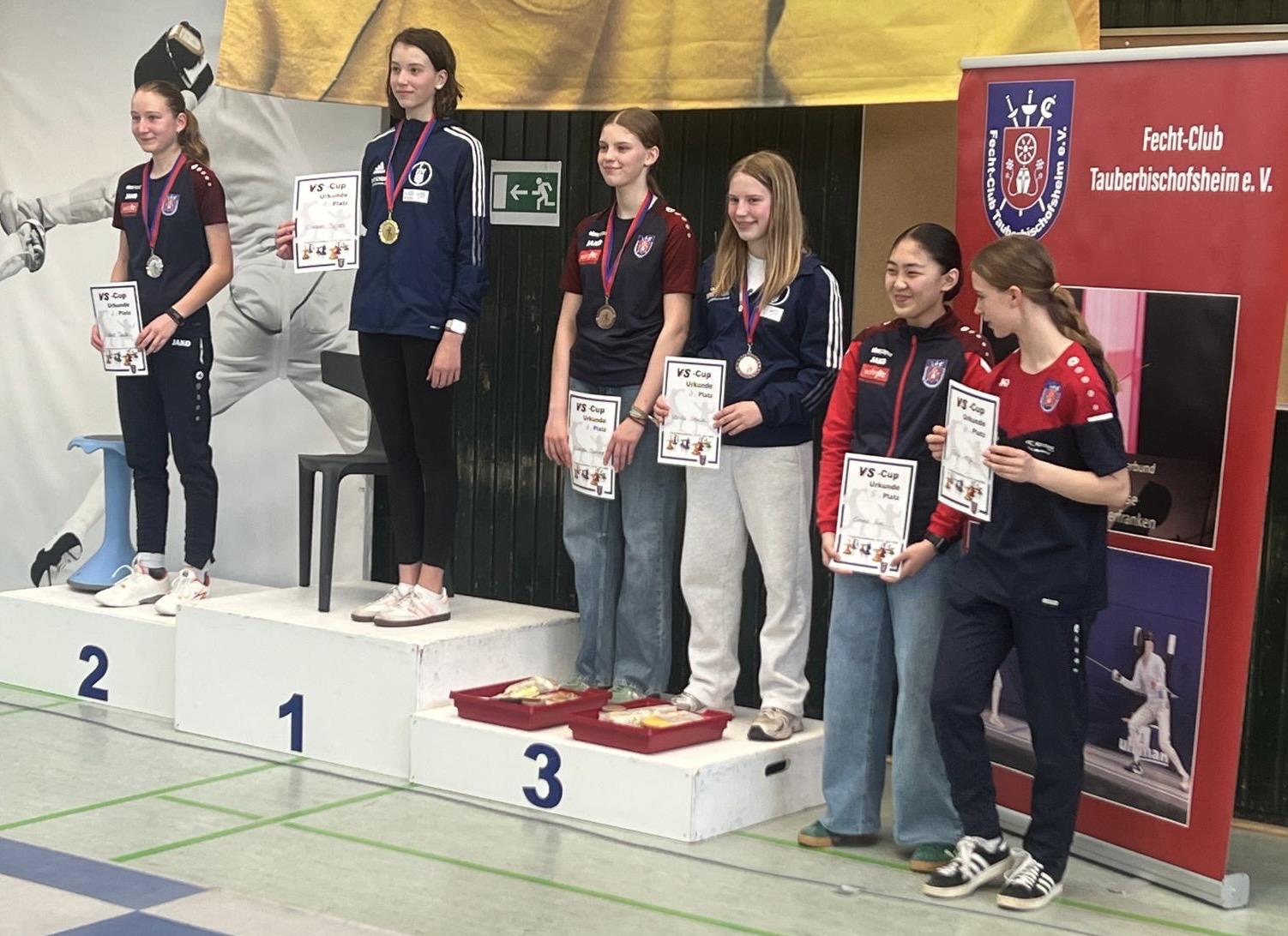 Bei den Jüngsten startete bei den Mädchen zum ersten Mal Sophia Maksymenko: Sie belegte Platz 15. In der U13 sicherte sich Ferdinand Carlé die Bronzemedaille. Das Podest verpassten Julius Kögler und Alessandro Kiel, belegten jedoch Platz 5 und 6. Ebenfalls unter den Top 8 war Linda Scherer bei den Mädchen. Klara Simic und Elisabeth Bejzel standen hier im Finale. Elisabeth konnte das Gefecht für sich entscheiden und triumphierte nicht nur in der U13, sondern auch im Turnier in der Altersklasse U15 stand sie als 12-jährige Fechterin nach einem Sieg gegen Duda (Tauberbischofsheim) ganz oben auf dem Podest. Den dritten Platz erkämpfte sich außerdem Marilou Steinle, und bei den Jungs holte auch Yihang Huang die Bronzemedaille, während Nicolas Gabor Platz 5 belegte.